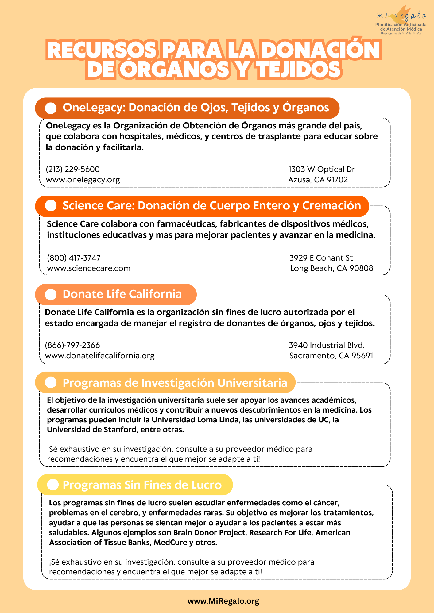 Recursos sobre donación de órganos, funerales y cremación